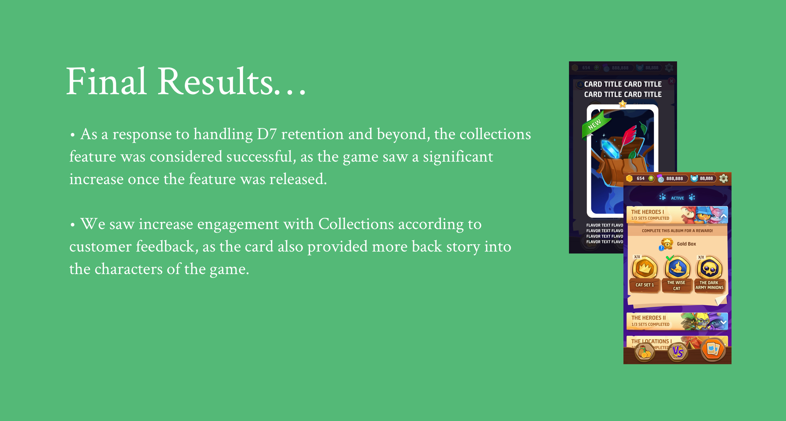 Our other game that was in development, which was also creating a Collections feature in parallel with Cat Force.