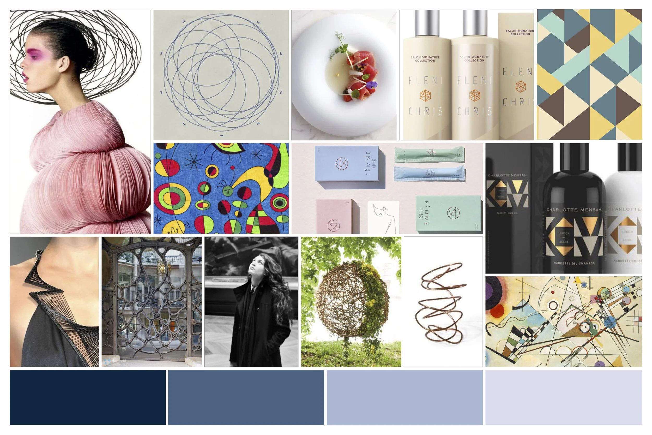-light/pastel colors(or monochrome?)- We could go more bold in colors(in keeping with the Kandinsky/Gaudi/abstract influence) but in order to stay more ‘corporate’/high-end I feel toning it down is more appropriate